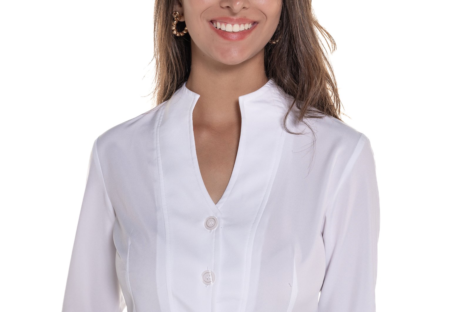 O Jaleco Azaleia combina sofisticação e funcionalidade, com modelagem acinturada, dois bolsos, fechamento em botões e mangas 7/8. O recorte e decote diferenciado do modelo lhe confere elegância e modernidade, sem abrir mão do conforto para o dia-a-dia. Oferece liberdade de movimentos e bem-estar ao longo do dia, o que é imprescindível para os profissionais da saúde e estética! Confeccionado em Microfibra, o que torna o jaleco fresco e leve.