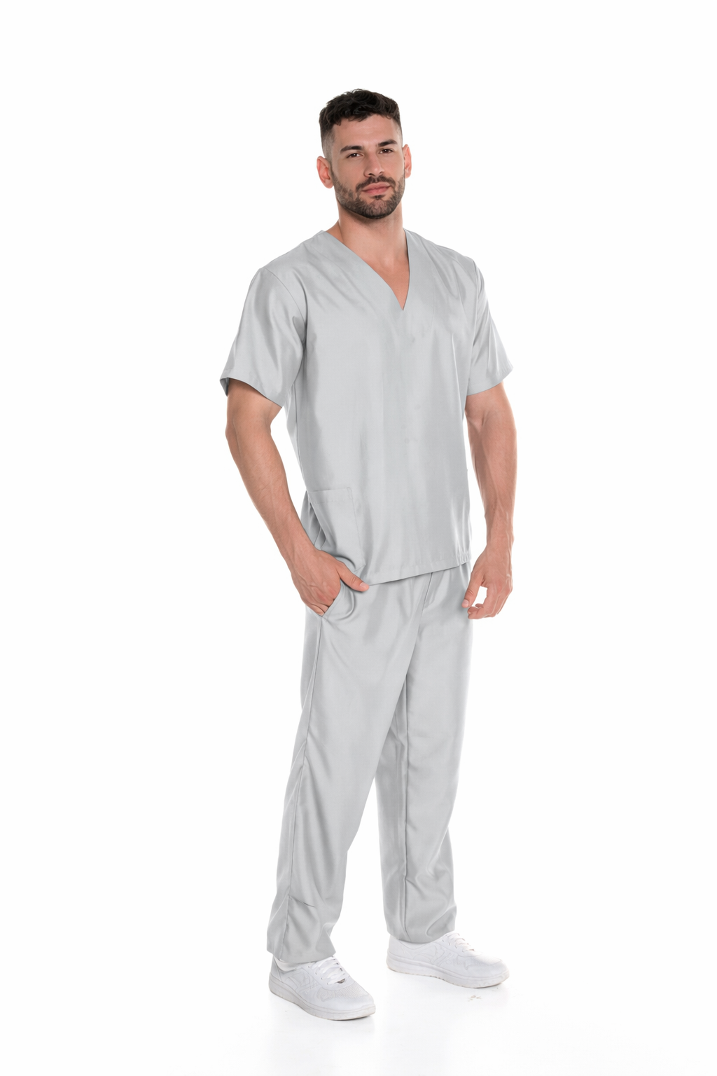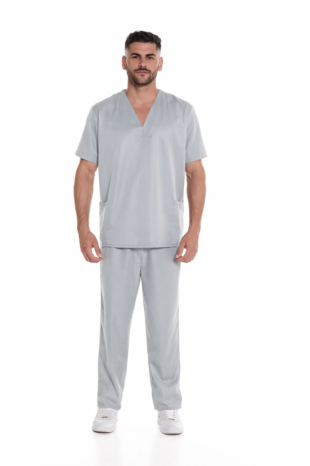 O scrub tradicional masculino é prático e confortável para o dia a dia de trabalho. Confeccionado em tecido com elastano, o que oferece flexibilidade e liberdade de movimentos durante toda a jornada. A blusa possui bolsos laterais funcionais e acabamento impecável. A calça apresenta cós com elástico e bolsos laterais embutidos, garantindo praticidade!
