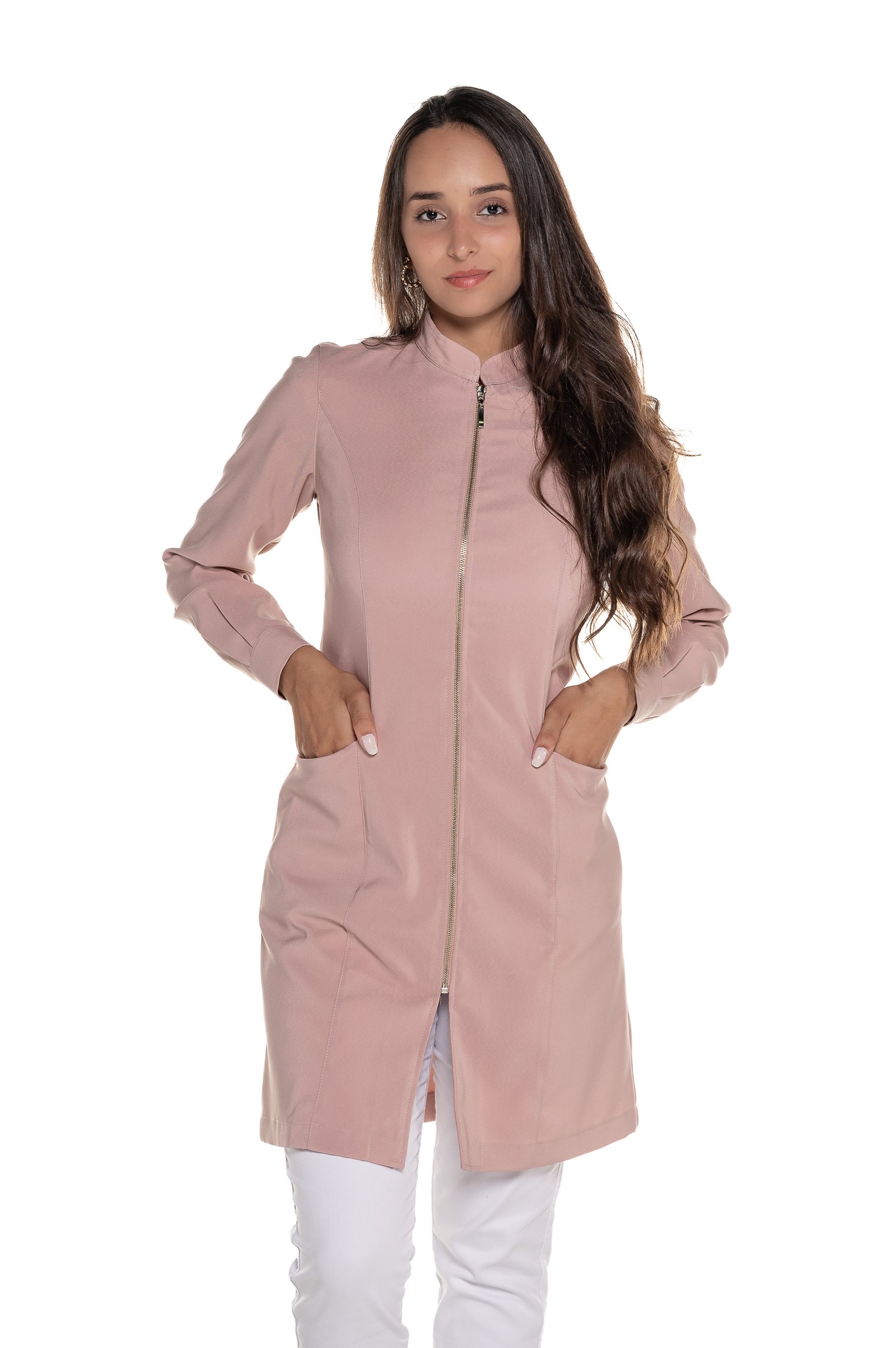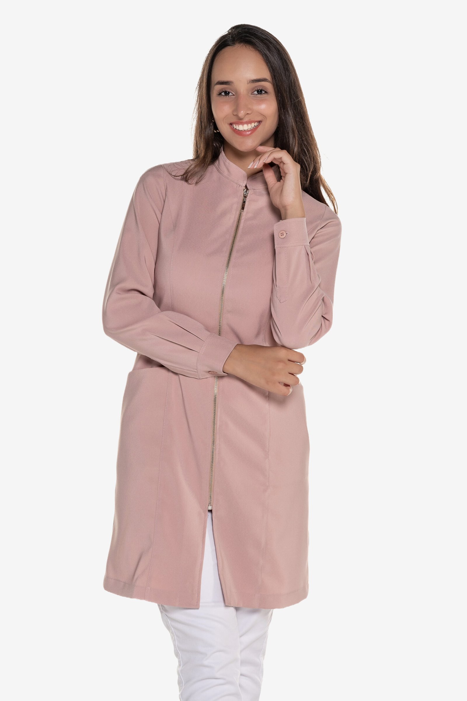 O Jaleco Violeta de zíper foi desenvolvido para unir sofisticação, praticidade e conforto no dia a dia profissional. Possui recortes princesa, modelagem acinturada, gola padre, bolsos frontais amplos, fechamento com zíper para maior praticidade e punho de camisa que da um toque elegante ao modelo. Confeccionado em gabardine de qualidade, que possui bom caimento e durabilidade.